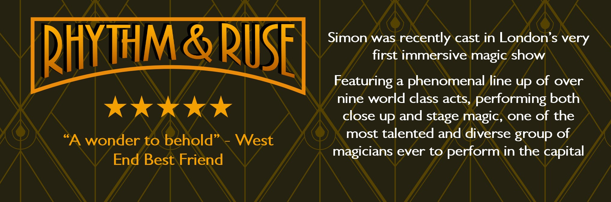 Simon was recently cast as one of the magicians in London’s very first immersive magic show, Rhythm & Ruse